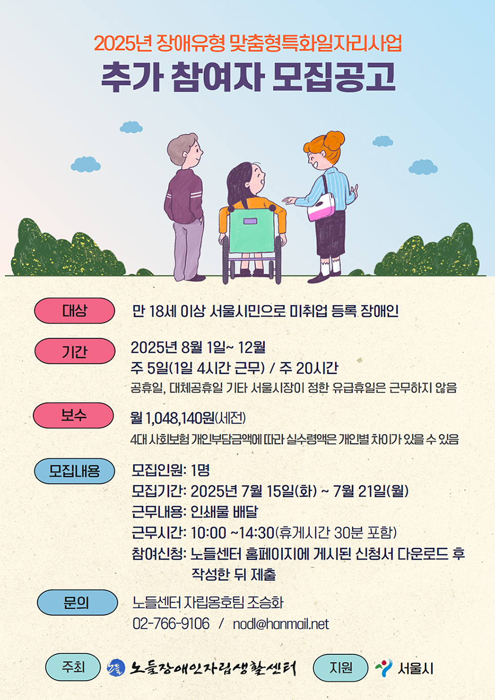 19. 2025년 장애유형 맞춤형 특화일자리사업 추가 참여자를 모집합니다. 모집 기간 연장!!