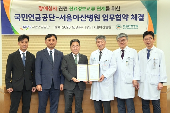 【에이블뉴스 백민 기자】 국민연금공단(이사장 김태현, 이하 공단)은 8일 서울아산병원(원장 박승일)과 진료정보교류시스템을 이용해 장애정도심사 보완 자료를 전자적으로 요청하고 수신하는 업무협약을 체결했다.